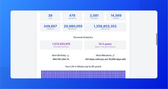 - β¨ The "Life in Weeks" Visualizer: This is my favorite part. Seeing your life laid out visually (based on a 90-year average) is both sobering and incredibly motivating.