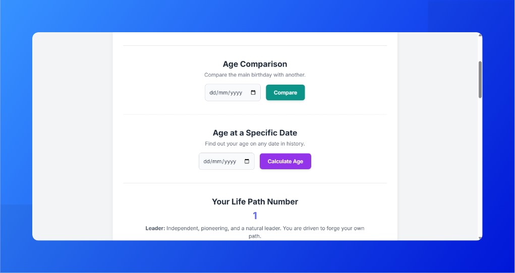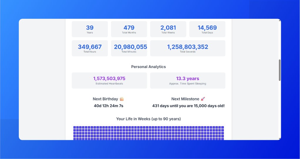 This whole thing started with a simple thought: "Why are age calculators so... boring?" Your birthday isn't just a number; it's your personal anchor in history. I wanted to build a tool that went beyond just counting the seconds and instead helped you explore the entire story of your date.
