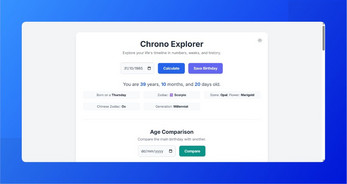 Chrono Explorer takes your birthday and turns it into a beautiful dashboard for your life, showing you everything from your generation name and life path number to what was happening in the world on the day you were born.